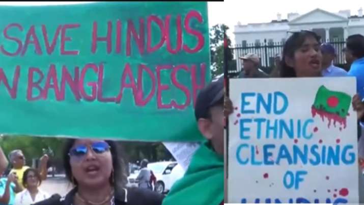 बांग्लादेश में हिंदुओं के खिलाफ हो रहे हमलों के विरोध में अमेरिका में भी आवाज उठाई जा रही है। बड़ी संख्या में लोगों ने व्हाइट हाउस के बाहर प्रदर्शन किया।